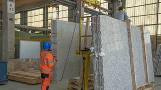 El personal de expediciones realiza todas las tareas destinadas a la salida de fábrica de los productos de granito comercializados en las máximas condiciones de seguridad, tanto del material como de los trabajadores.